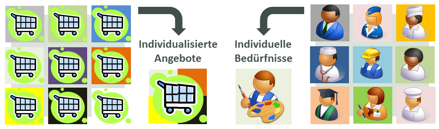 Bei komplexeren Angebotsstrukturen empfiehlt sich der Aufbau von Warenkörben mit verschiedenen Angeboten, die sämtlich geeignet sind, die identifizierten unterschiedlichen Bedürfnisse des Kundensegments zu erfüllen. Als weitere Variante bietet sich die Erstellung von Kundenprofilen und Musterkunden an. Die individuelle Auswahl der jeweils idealen Variante erfolgt stets unter Berücksichtigung sämtlicher relevanten Faktoren. Dazu zählen insbesondere die Unternehmensausrichtung, das Branchenumfeld sowie die Kundenstruktur.